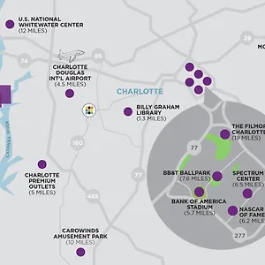 The seat arena "Spectrum Center" is less than 0.6 km away. It is about 1 km away from the centre of Charlotte. Dunhill Hotel is a short driving distance of the 75,523-seat Bank of America Football Stadium.